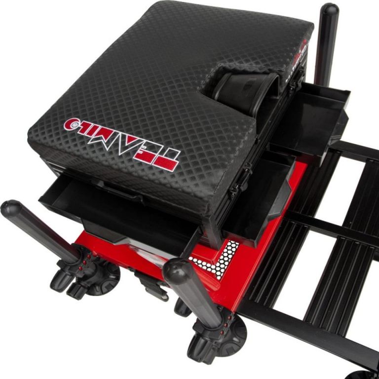 DescripciónDetalles del productoLa caja de asiento del 60 aniversario, una evolución del modelo Targa de 1964, cuenta con una estructura de aluminio duradera y un tratamiento anti corrosión especial. Con un aspecto moderno y atractivo, incorpora seis patas telescópicas de 36 mm de diámetro que se deslizan a través de bloques HTF sólidos, lo que permite elevarla 35 cm adicionales, manteniendo una sólida estabilidad en cualquier superficie gracias a los pies antideslizantes ajustables M-FOOT. El asiento presenta el clásico acabado Carbon Look de los modelos recientes, con unacarcasa rígida clásica fabricada con un gel especial que evita que el cojín se deforme tras horas de pesca, ofreciendo mayor comodidad al pescador. Dispone de dos cajones frontales, uno lateral y dos compartimentos bajo el asiento, así como un espacio bajo la estructura modular de cajones ABS para añadir una caja (se vende por separado). Para facilitar su posicionamiento en la orilla, incluye dos niveles de burbuja, uno en el reposapiés deslizante y otro lateral. La cesta Sixty está equipada con una correa para el hombro y está diseñada para incorporar todos los accesorios y soportes Milo QR, además de contar con los ganchos para añadir el kit de enganche de remolque.