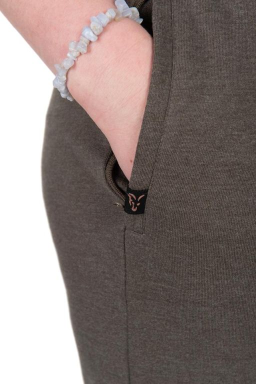 Marga Dusty Olive / Logotipos Fox impresos en malva- Bolsillos con cremallera- Cordones en la cintura- Puños elásticos en canalé- Cintura interior elástica con marca Fox en jacquard- 60% algodón, 40% poliéster- 280gsm- Disponible en tallas de la S 8/10 a la XL 20/22Altura de la modelo: 1,70 m/165 cmLa modelo lleva: Talla M