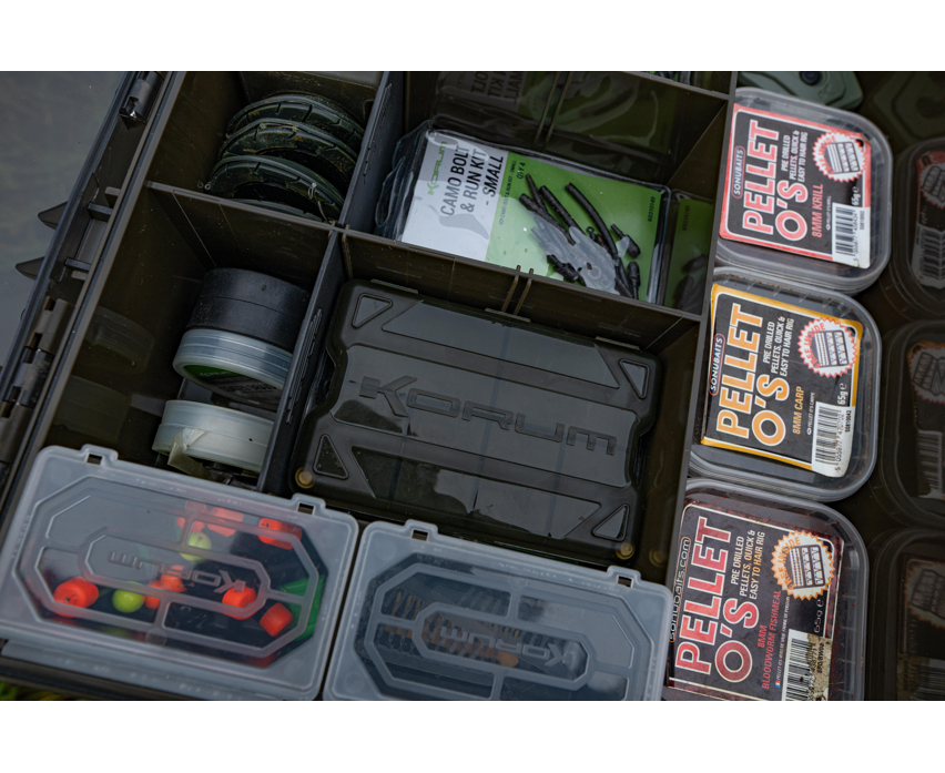 Una caja de anzuelos específica que mantiene tus anzuelos en un entorno seguro y protegido, garantizando un filo óptimo. Cada anzuelo se coloca en ranuras de silicona suave y queda sujeto firmemente en su posición. El compartimento inferior es ideal para anzuelos preafilados, pelos para anzuelos y otros anzuelos preatados. 11 cm de ancho x 7,5 cm de profundidad x 2 cm de alto.