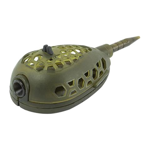 Alimentadores de larvas Camo. Estos nuevos alimentadores de larvas intercambiables llevan la ocultación de los aparejos a un nuevo nivel, ofreciendo el mejor alimentador de larvas jamás diseñado. Combina el arte del camuflaje con la presentación perfecta del cebo. Utiliza nuestro sistema de inserción en línea para cambios rápidos de alimentador sin necesidad de goma de cola y máxima seguridad del montaje. Incluye una pinza de goma emergente para presentar los cebos directamente sobre el alimentador.