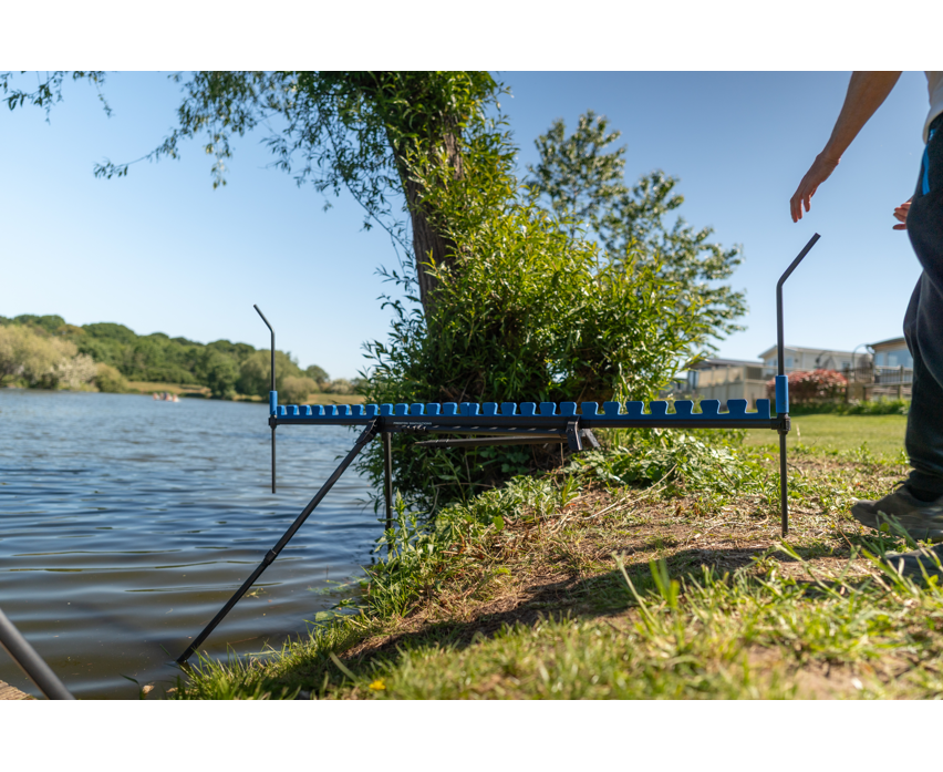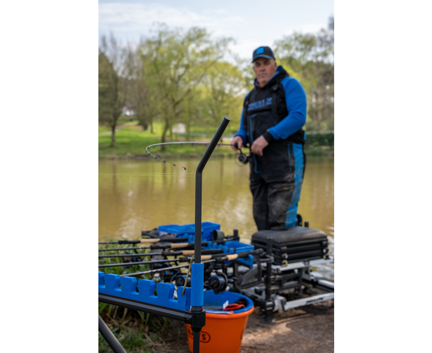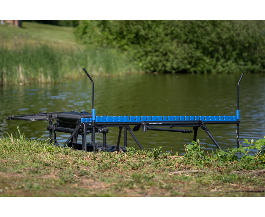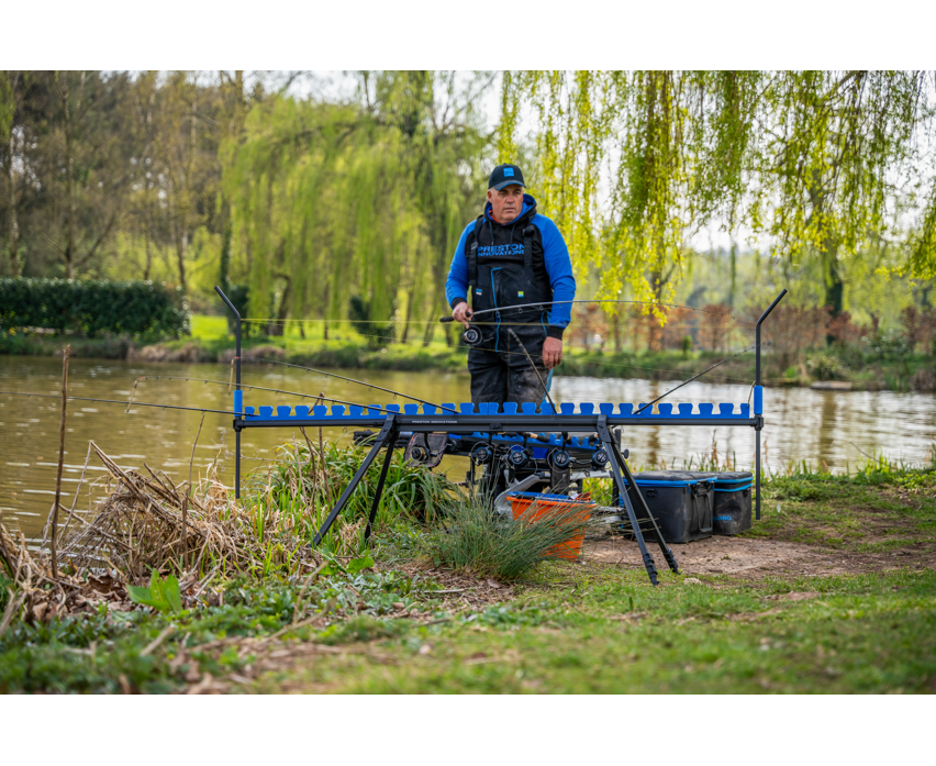 Un soporte multiusos, diseñado para albergar una gran cantidad de cañas o kits de pesca de alta gama, con la ventaja adicional de contar con varillas de distancia integradas. Con una longitud exacta de 2 m, estas varillas permiten al pescador medir con precisión su distancia sin tener que abandonar su asiento. También son ideales cuando el terreno impide el uso de varillas de distancia tradicionales.