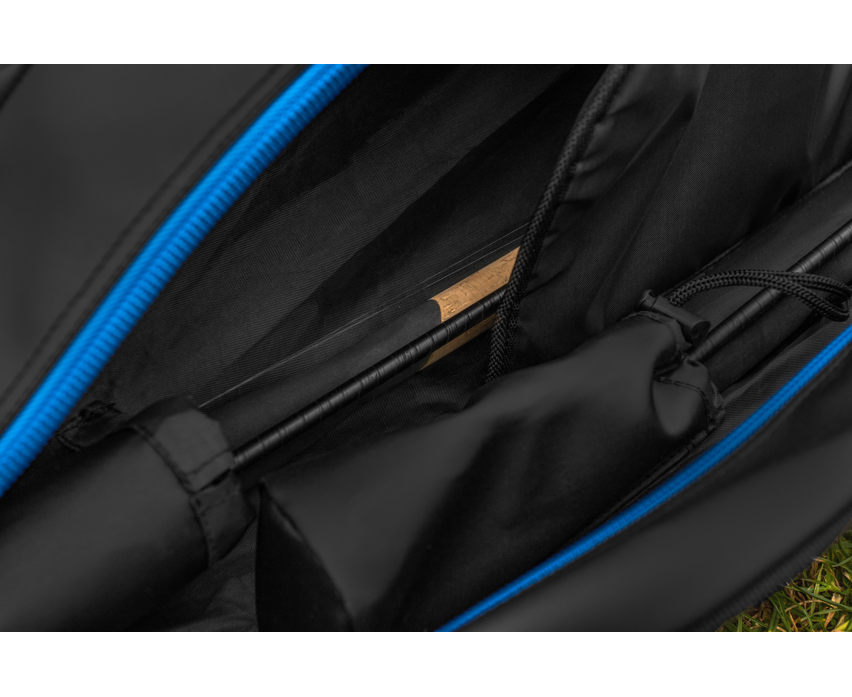 Diseñada para albergar cómodamente dos cañas de hasta 3,30 m (2 piezas), esta bolsa de viaje es la opción ideal para el pescador que busca una forma segura y compacta de transportar sus cañas. Fabricada con una carcasa exterior rígida, ofrece la protección adecuada a la vez que mantiene un diseño compacto. Cuenta con dos bolsillos externos para asas de sacadera y un protector de puntas.Carcasa exterior rígida
