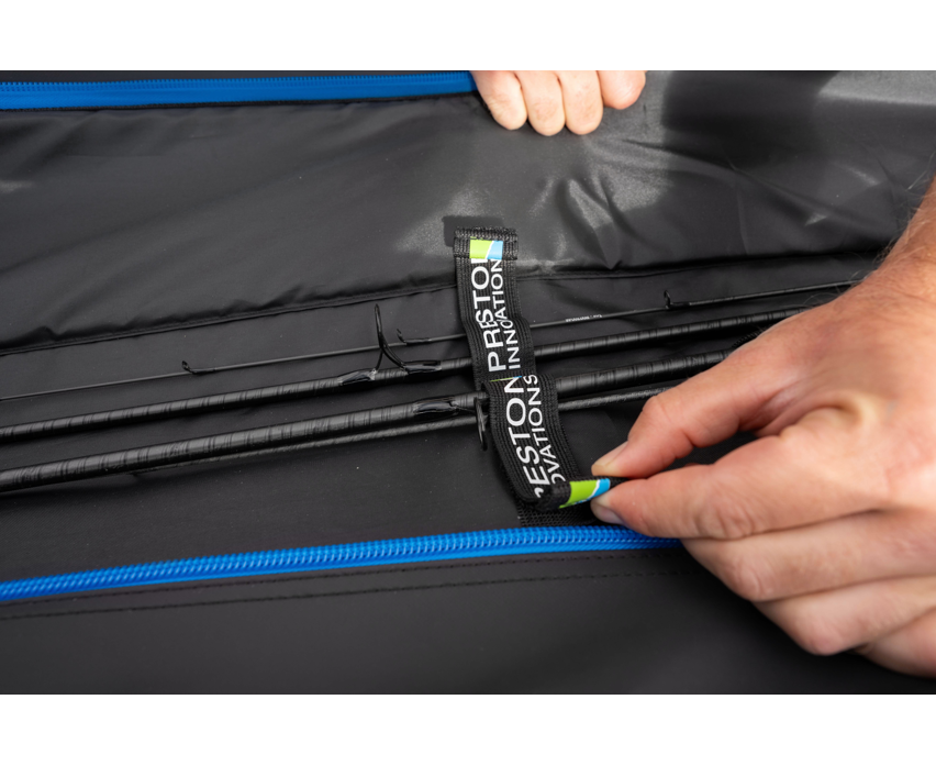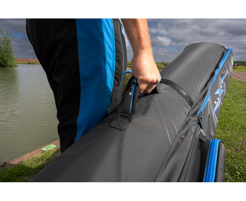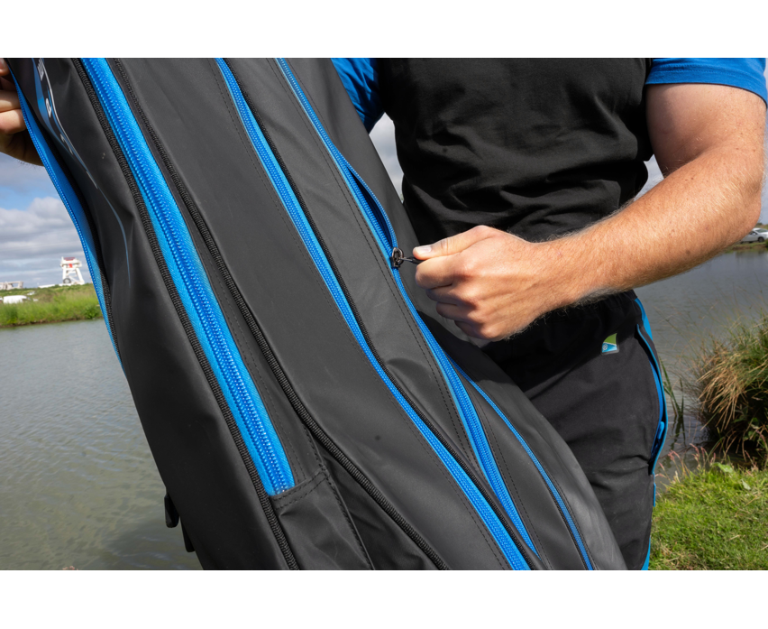 Una espaciosa bolsa de viaje con capacidad para seis cañas de hasta 3,30 m (2 piezas). Es la opción ideal para el pescador que prefiere llevar una gran cantidad de cañas. Su amplio espacio interior permite guardar fácilmente incluso los carretes de mayor distancia. También incluye dos bolsillos externos, perfectos para guardar las asas de sacadera y un protector de puntas.Dimensiones: 185 x 40 x 27 cm.