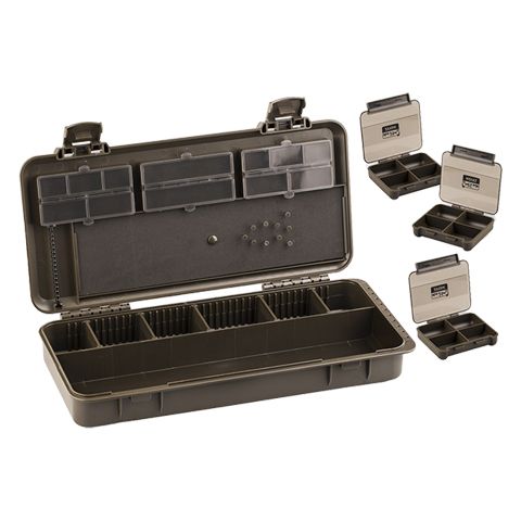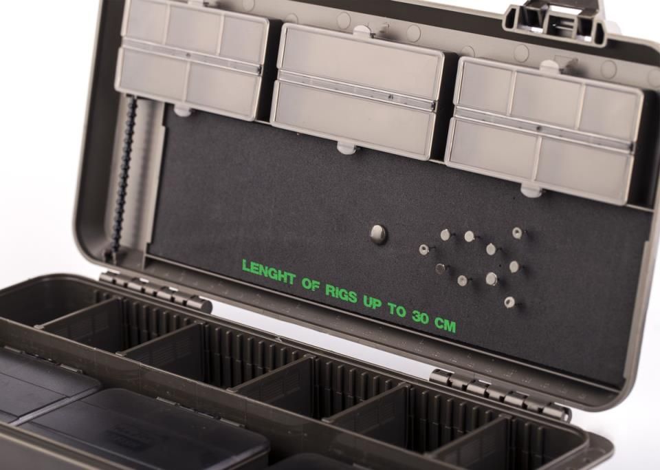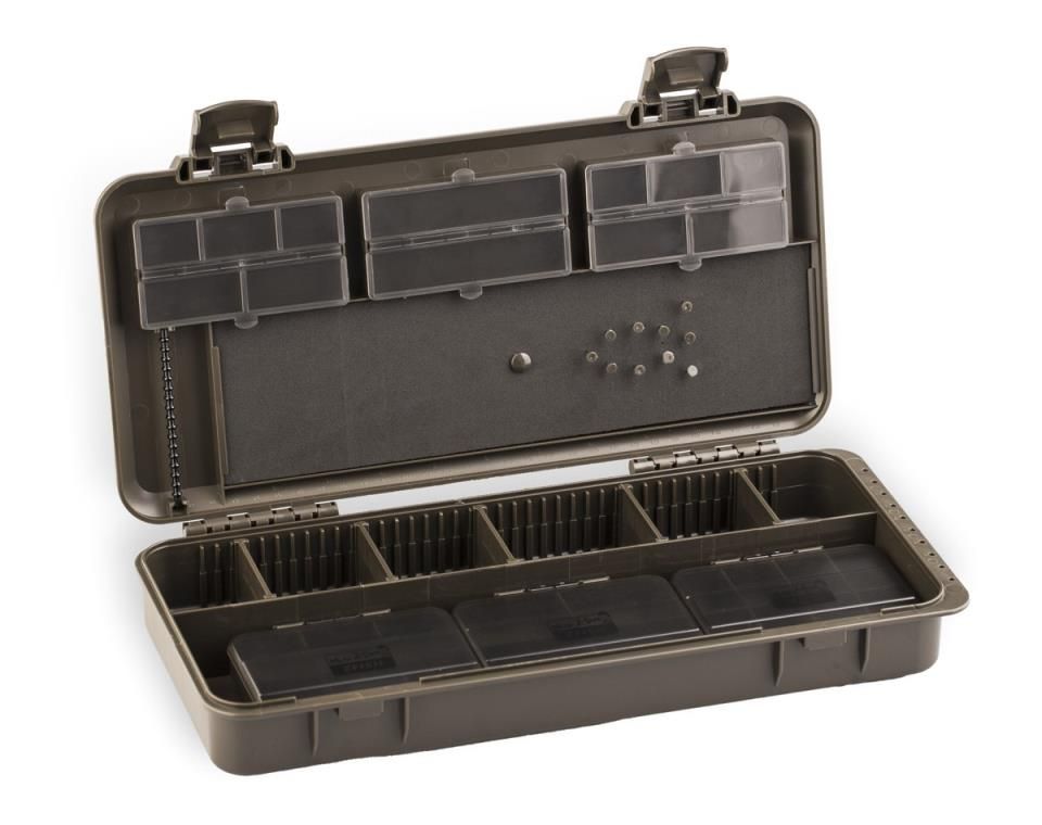 ZFISH Z-Box PRO 38 es una práctica y universal caja de aparejos de la marca checa ZFISH. Este práctico organizador es una versión más compacta del modelo PRO 45 y cuenta con 38 compartimentos, la mayoría ajustables gracias a divisores extraíbles. Dos resistentes clips de cierre garantizan un cierre seguro y evitan la apertura accidental. La tapa del organizador está equipada con compartimentos robustos con cierre y ofrece un completo espacio para guardar aparejos con barra para anzuelos, sección de espuma de 270 x 80 mm, 10 alfileres y una regla integrada. Otra característica de este modelo de caja de aparejos es la barra perforada integrada para colgar los montajes terminados, ubicada en uno de los lados cortos de la parte inferior de la caja. Las dimensiones totales de la caja son de 350 x 165 cm y 50 mm de profundidad, lo que permite guardar con seguridad pequeñas joyas, incluyendo herramientas para atar y montar los aparejos, como tijeras, alicates, agujas, tensores de nudos, etc. El equipamiento superior de esta carpeta son tres cajas independientes más pequeñas de 102 x 80 x 24 mm con 4, 6 y 8 compartimentos. Su diseño sencillo y limpio, con bordes biselados y redondeados, no solo es atractivo, sino que, gracias a sus formas redondeadas, resulta mucho más cómodo de manejar. La excelente impresión general se ve reforzada por la durabilidad de sus materiales y por sus componentes individuales en un elegante diseño verde oliva oscuro. Puede usar este organizador para la mayoría de las técnicas de pesca, especialmente para la pesca de carpas y feeder.• Caja de aparejos/organizador 4 en 1 práctico y de alta calidad (3 cajas adicionales separadas más pequeñas incluidas en la caja de aparejos)• 38 compartimentos (la mayoría con la posibilidad de ajustar el tamaño gracias a divisores extraíbles)• Tapa equipada con compartimentos cerrables y un cargador completo en el líder que incluye pasadores de bloqueo y una regla• Barra perforada integrada para colgar conjuntos y aparejos listos para usar• El cierre seguro y la apertura accidental están garantizados por dos fuertes clips de cierre• Diseño moderno y limpio combinado con materiales y componentes de calidad en un diseño verde oliva oscuro• Dimensiones generales: 350 x 165 x 50 mm